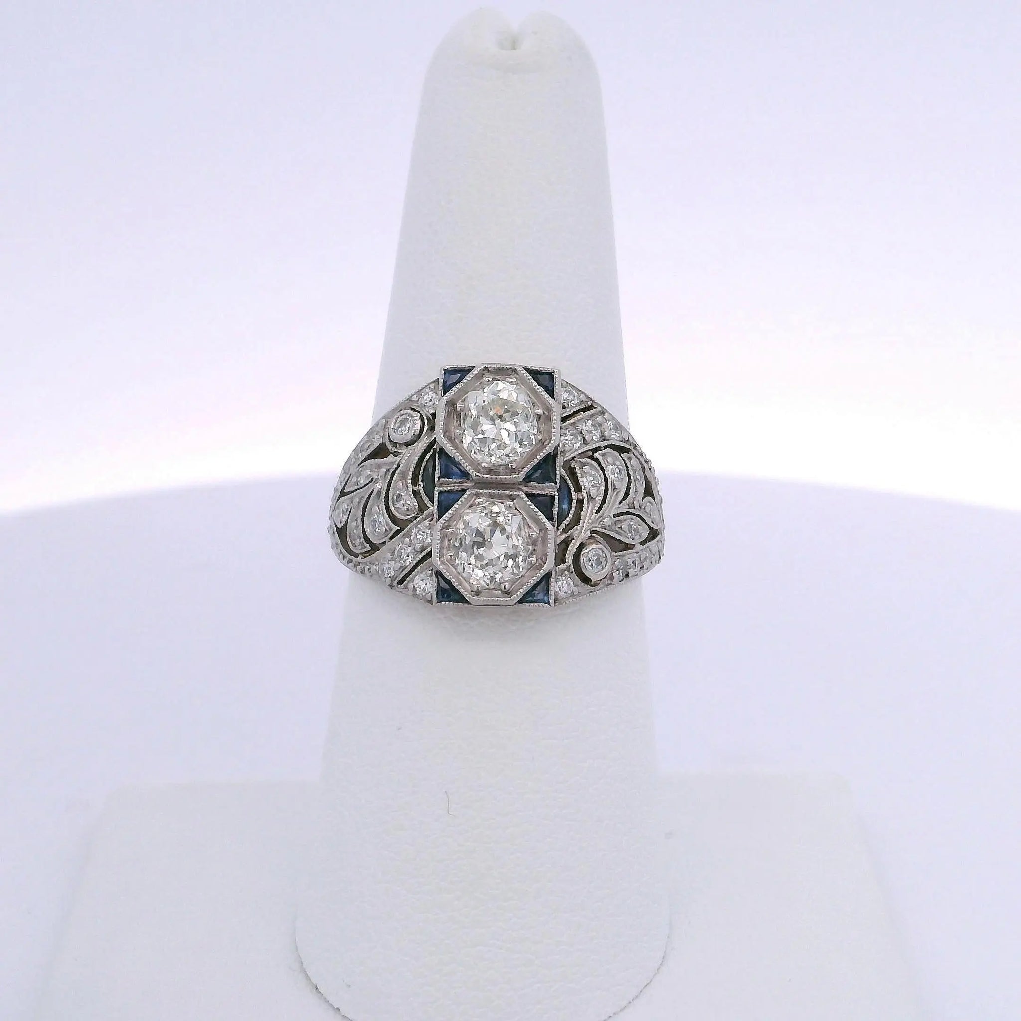 1.12CTW OLD MINE CUT DIAMONDS, 0.50CTW OLD EUROPEAN CUT DIAMONDS, & 0.30CTW SAPPHIRE ACCENTS RING