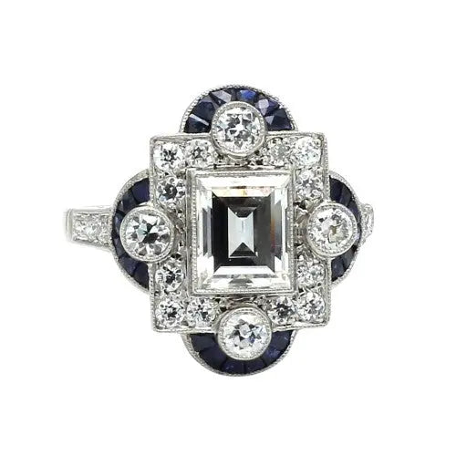 1.30ct Art Deco Step Cut Diamond & Sapphire Ring