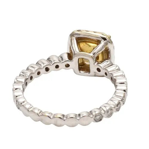 1.60ct Fancy Yellow Cushion Cut Two-Tone Diamond Ring with Halo