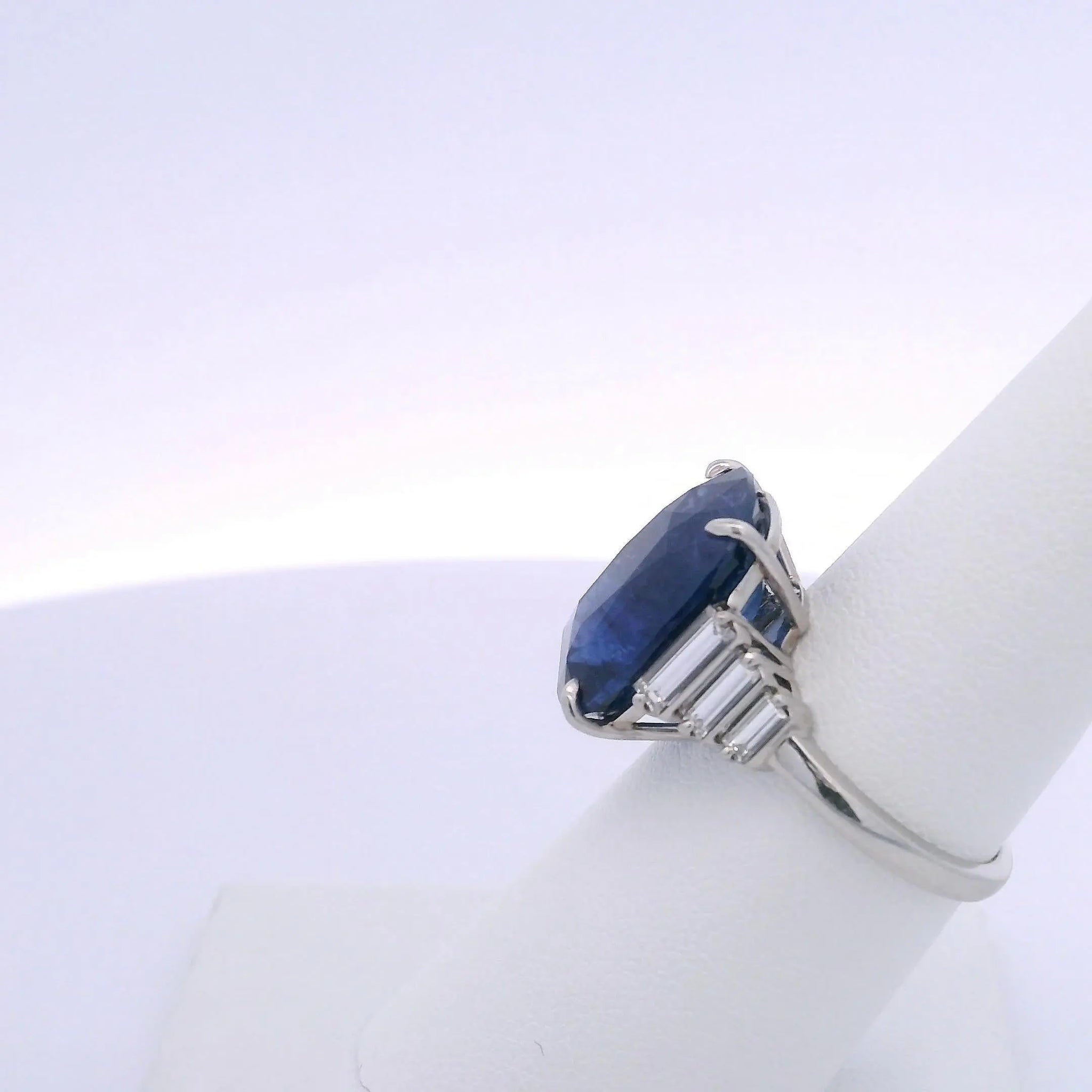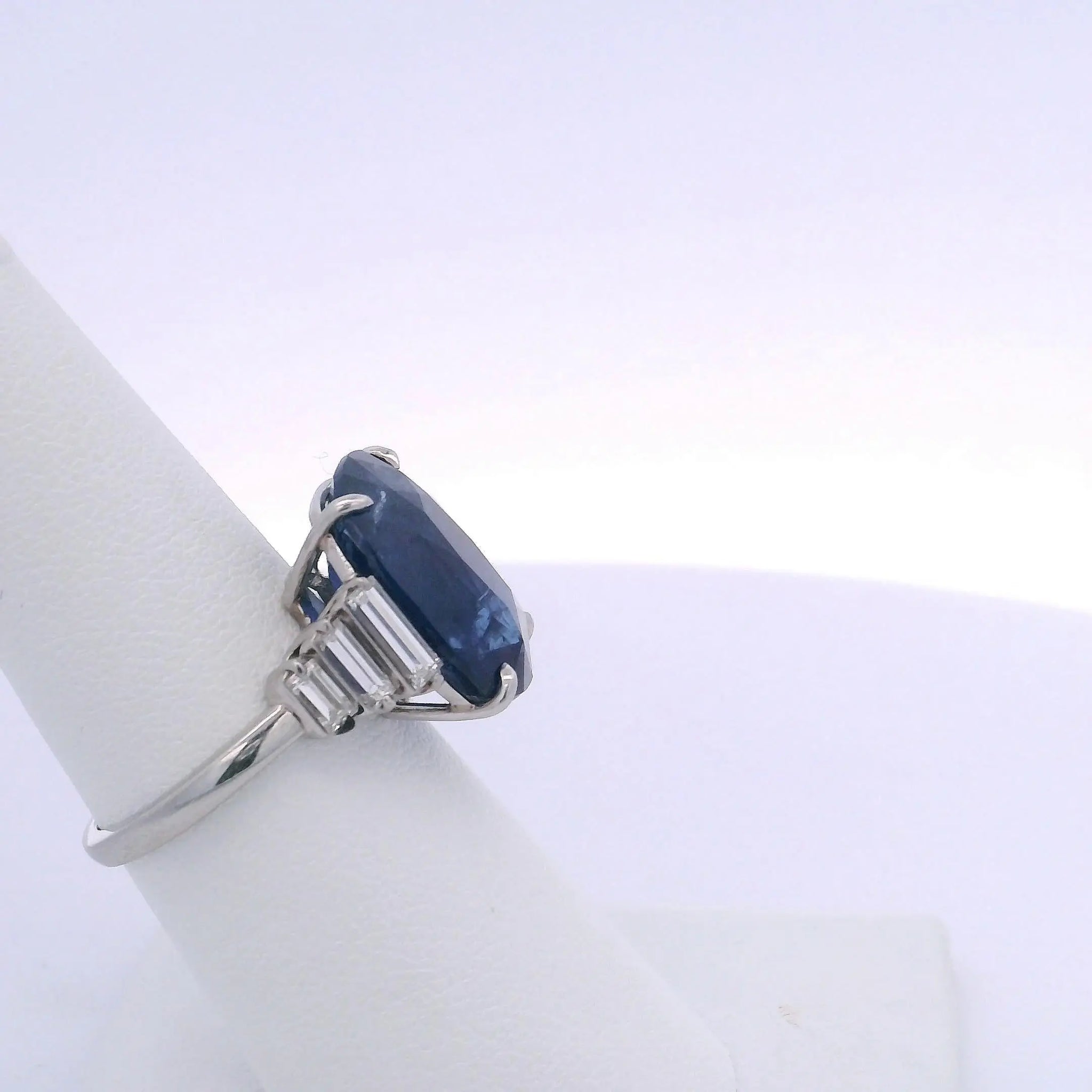 12.92CTW CUSHION SAPPHIRE & 0.66 BAGUETTE CUT DIAMOND RING