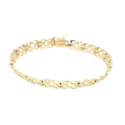 14K yellow gold diamond-cut link bracelet, 5.9g, 7 inches long with a 5.9mm thickness.