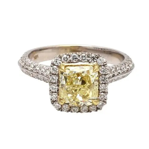 18K Gold Fancy Yellow VS2 Cushion Diamond Ring