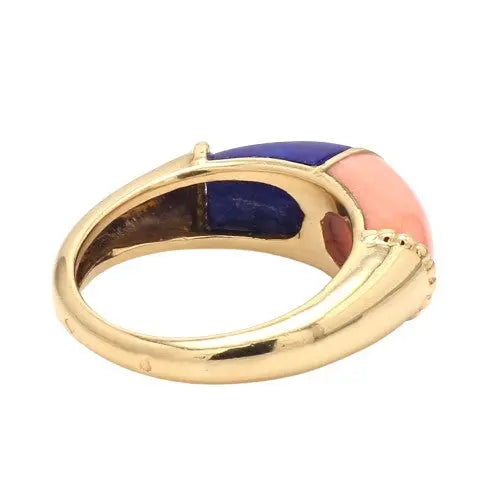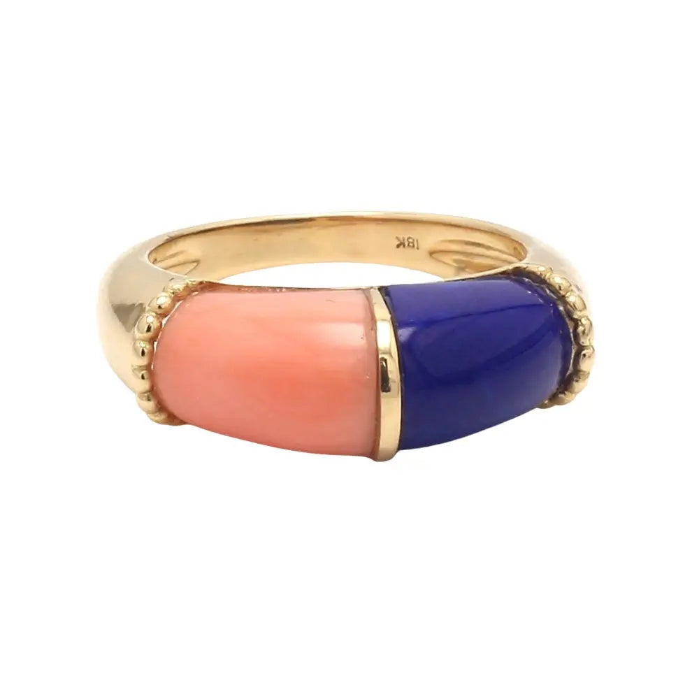 18K White Gold Coral and Lapis Ring Size 6