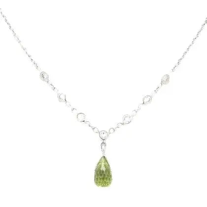 18K White Gold Necklace with Peridot and Diamonds