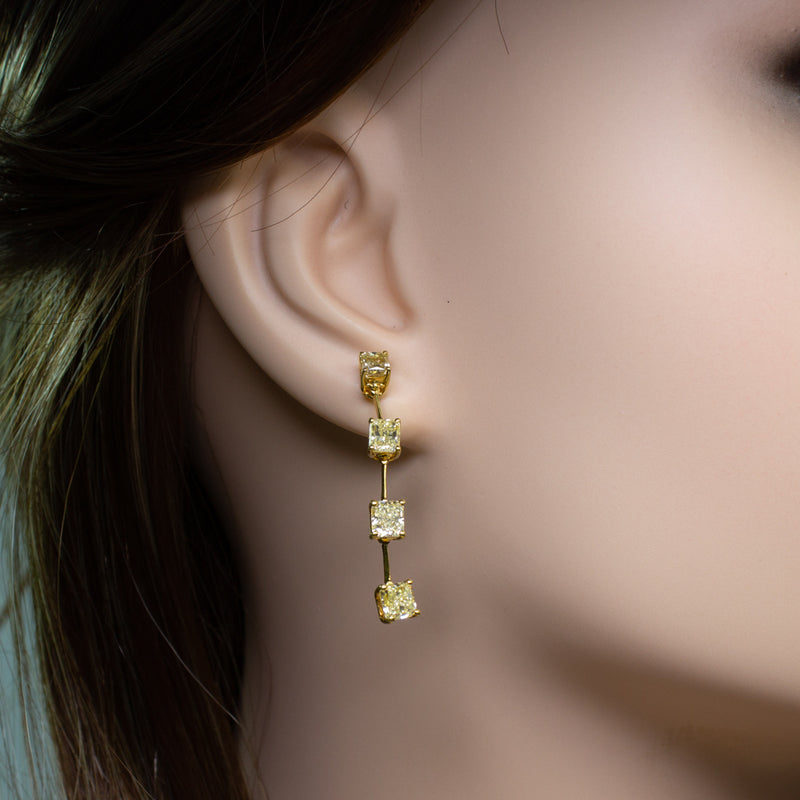 These elegant 18K yellow gold earrings feature stunning fancy yellow diamonds, offering vibrant color and luxury. Weighing 4.7 grams, they are a perfect addition to any jewelry collection.