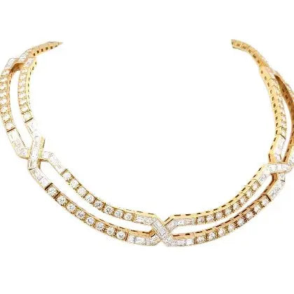 18K Yellow Gold Graff Necklace with Baguette & Round Brilliant Cut Diamonds