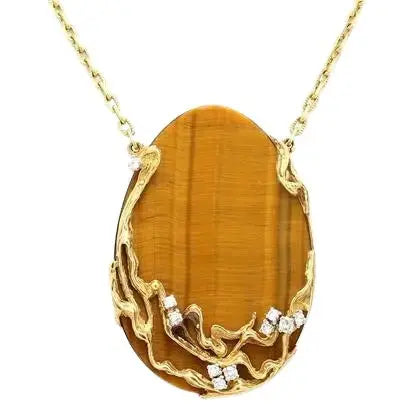 18k Yellow Gold Tiger's Eye and Diamond Necklace