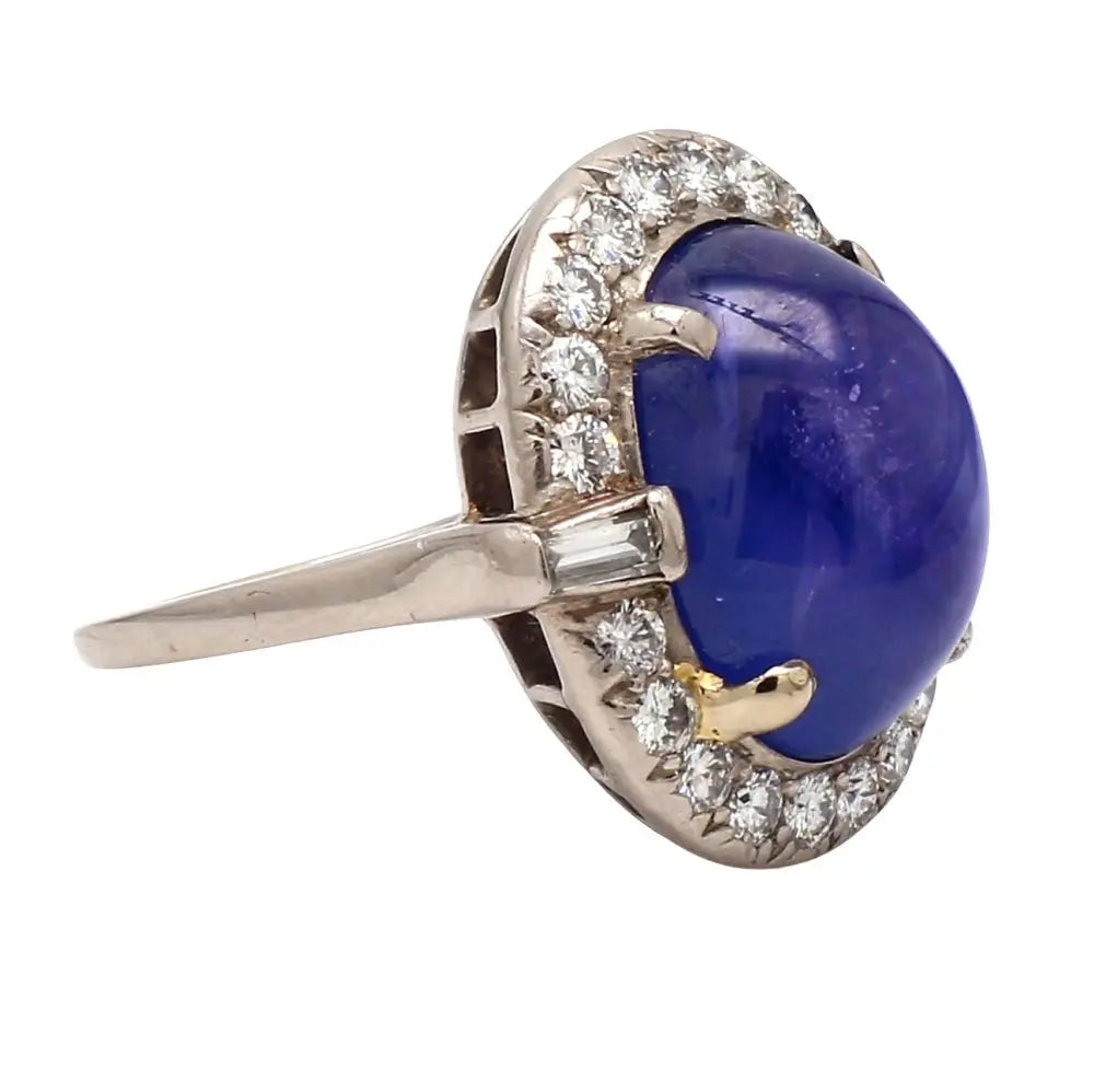 This captivating 19.51ct oval star sapphire ring is set in 950 palladium and accented with 0.50ctw of round brilliant diamonds. Complete with an AGL certificate, this resizable size 8 ring weighs 10.2 grams and offers a unique, luminous appeal.