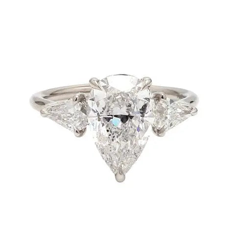 Platinum Ring with Pear Shape Diamond & Pear Shape Accent Diamonds