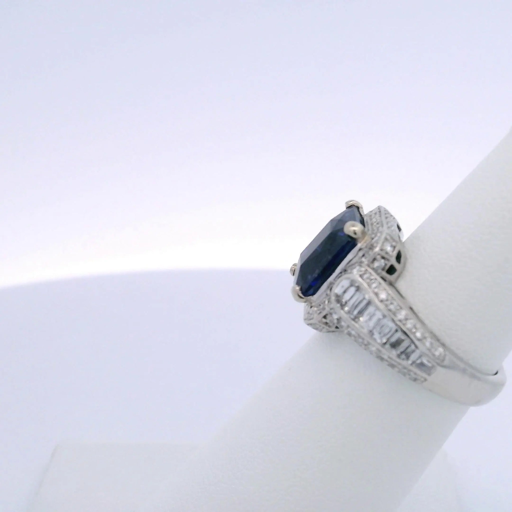4.16CTW OCTAGONAL CEYLON SAPPHIRE HEAT & 1.60CTW BAGUETTE/ROUND BRILLIANT CUT DIAMOND RING