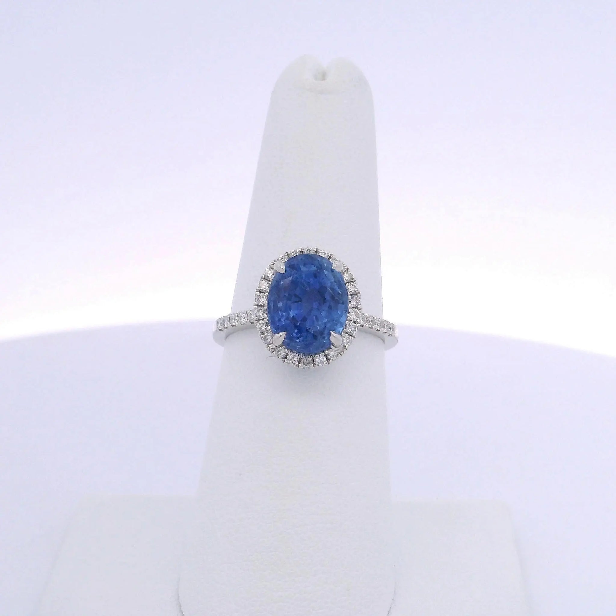 5.03CTW OVAL SAPPHIRE & 0.40CTW ROUND BRILLIANT CUT DIAMOND RING
