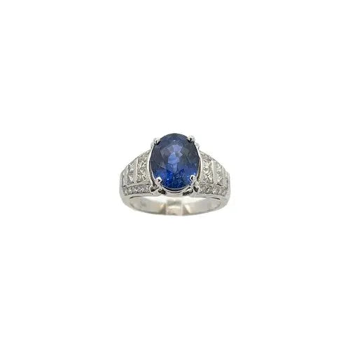 5.08ct Oval Sapphire Ring with 1.00ctw Princess Cut Diamonds and Round Brilliant Diamonds