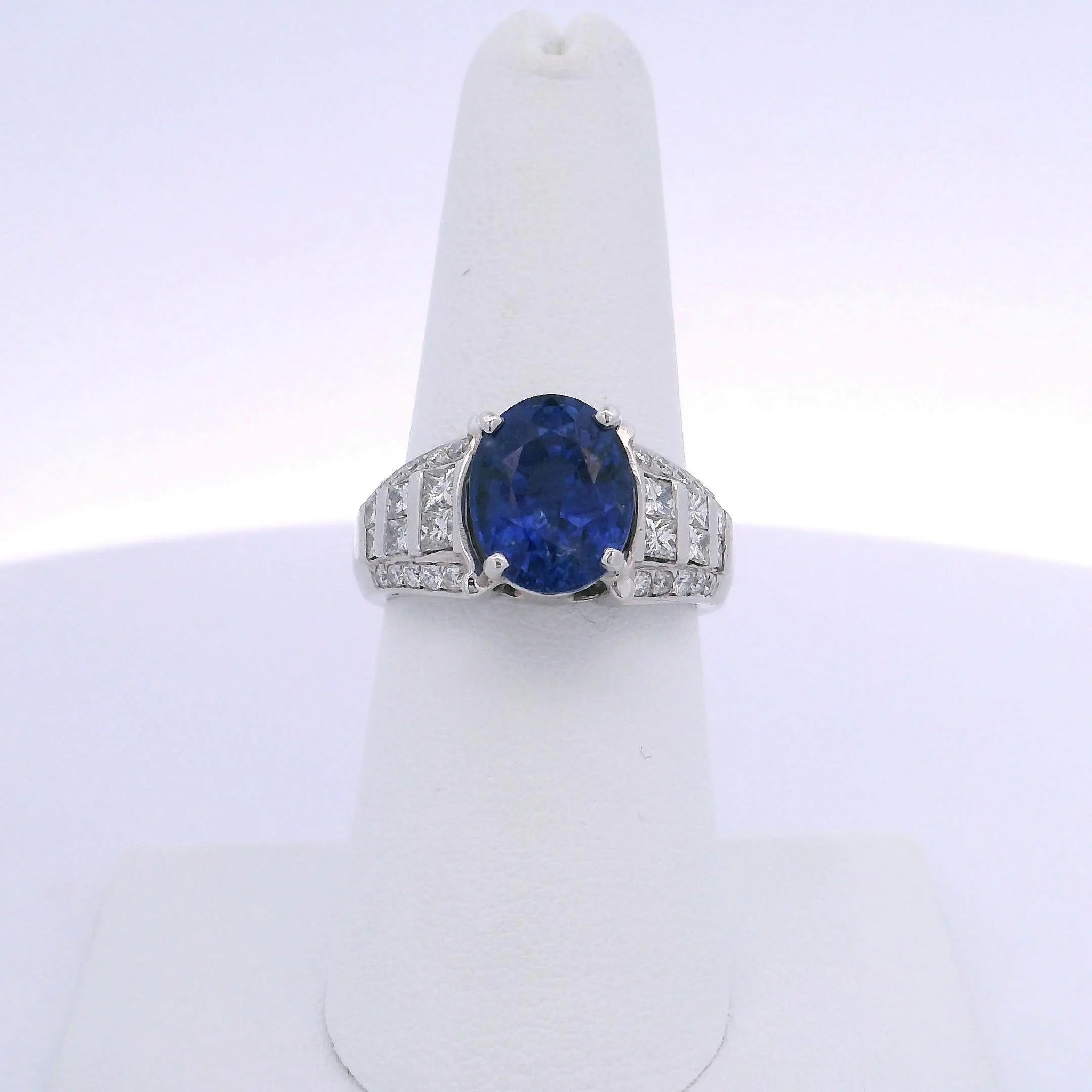 5.08CTW OVAL CUT SAPPHIRE 1.00CTW PRINCESS & ROUND BRILLIANT CUT DIAMOND RING – Image 1