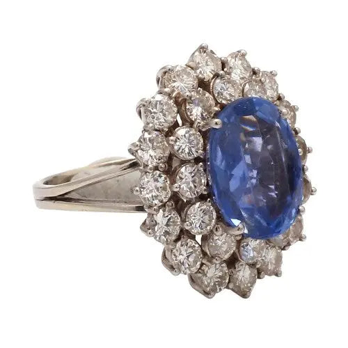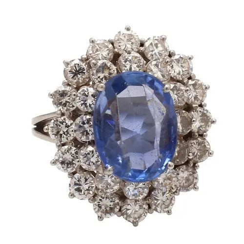 6.00ct Unheated Sapphire & Diamond Ring Sz. 7.5