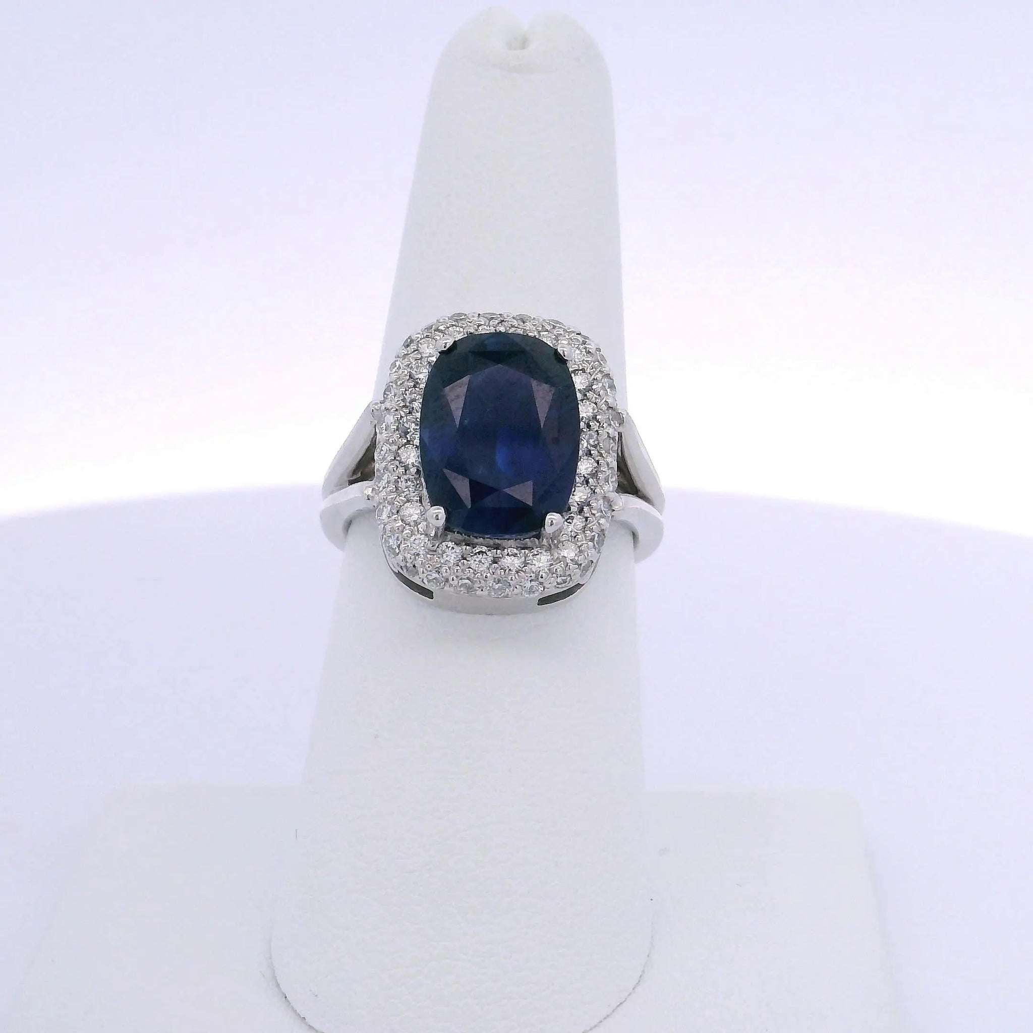 6.00CTW OVAL SAPPHIRE & 0.75CTW ROUND BRILLIANT CUT DIAMOND RING