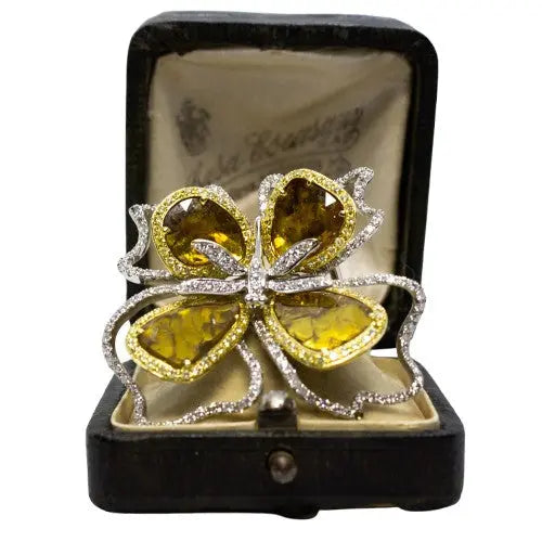 6.14ctw Yellow Diamond Slices Floral Dragonfly Ring – Image 1