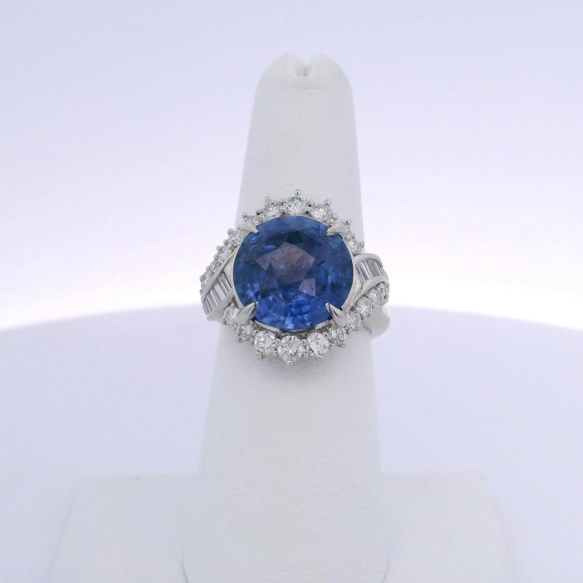 8.23CTW ROUND SAPPHIRE & 0.85CTW BAGUETTE & ROUND BRILLIANT CUT DIAMOND RING