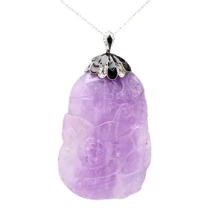 Carved Lavender Jade Gold Necklace with Diamonds and Enamel Inlay