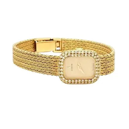 This Corum watch features an 18mm x 22mm case in 18k yellow gold, accented with 0.45ct of round brilliant cut diamond bezel. Weighing 29.1g and fitting a 6.25" wrist, it is a refined and elegant timepiece.