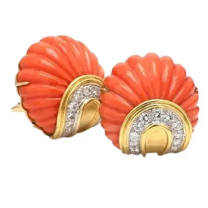 David Webb Carved Coral Earrings with Diamonds