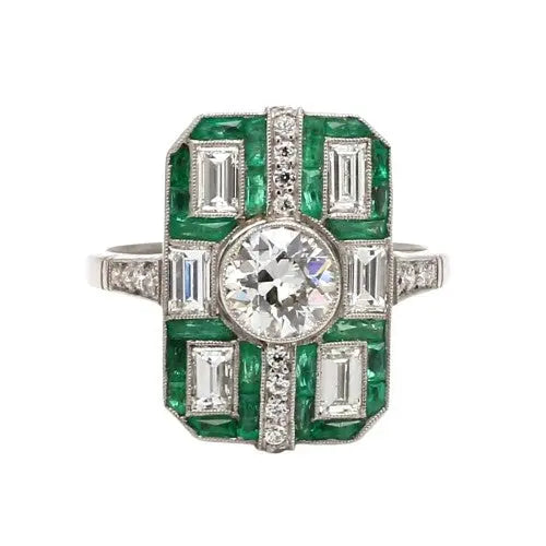 Accent/Side Stones: (1.40ctw) Emeralds, (0.60ctw) French Cut Diamonds, (0.20ctw) Old Mine Cut Diamonds