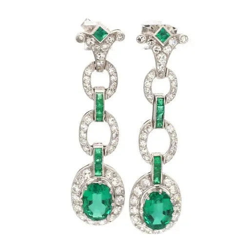 Emerald & Diamond Estate Drop Earrings with Emerald Accents