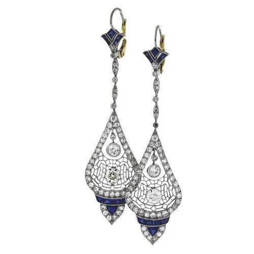 Platinum Diamond and Sapphire Drop Earrings