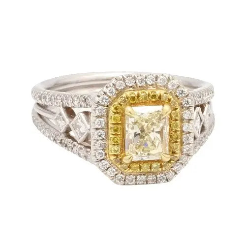 18k Gold Ring with Radiant Yellow Diamond and White Diamonds