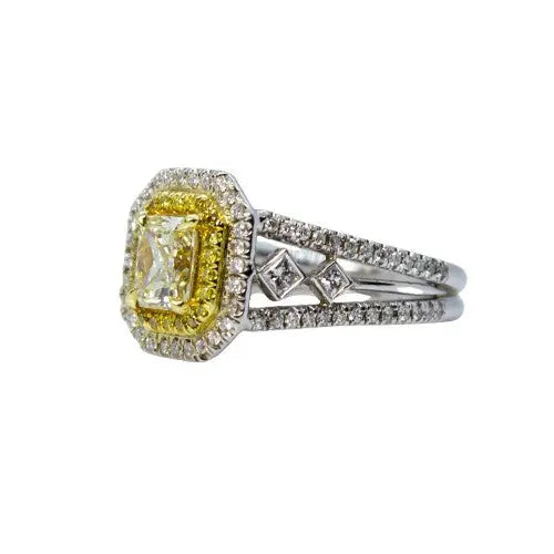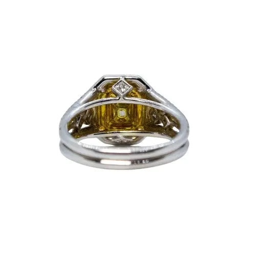 Fancy Light Yellow Radiant & Round Diamond Ring – Image 1