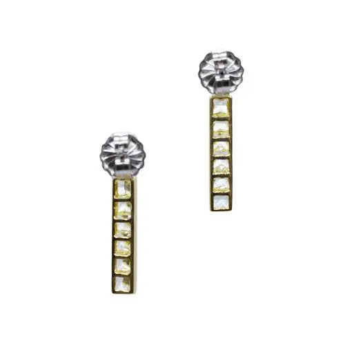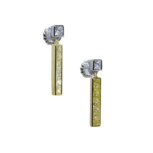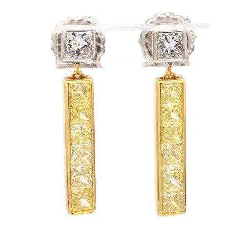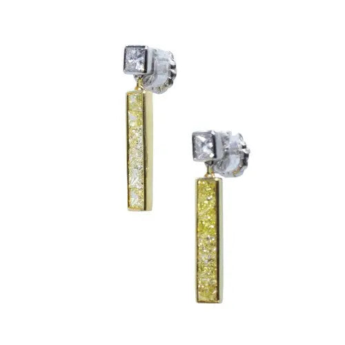 Fancy Yellow and White Diamond Princess Cut Gold Earrings