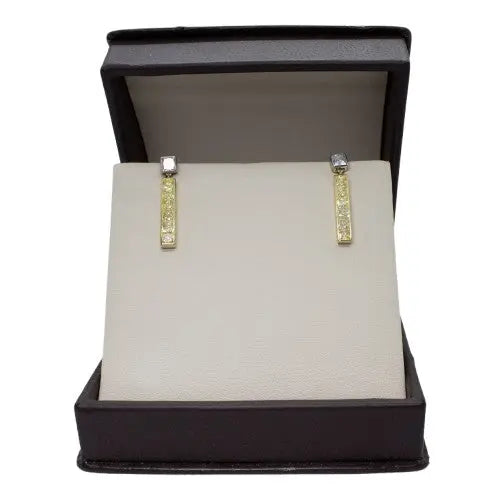 Fancy Yellow and White Diamond Princess Cut Gold Earrings – Image 1