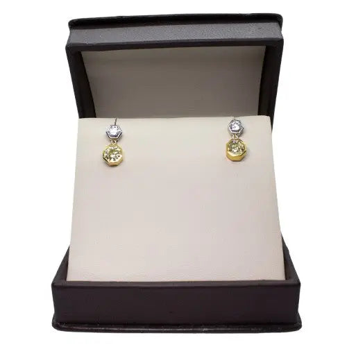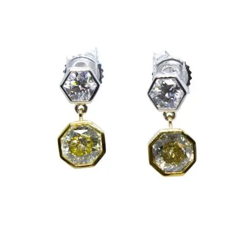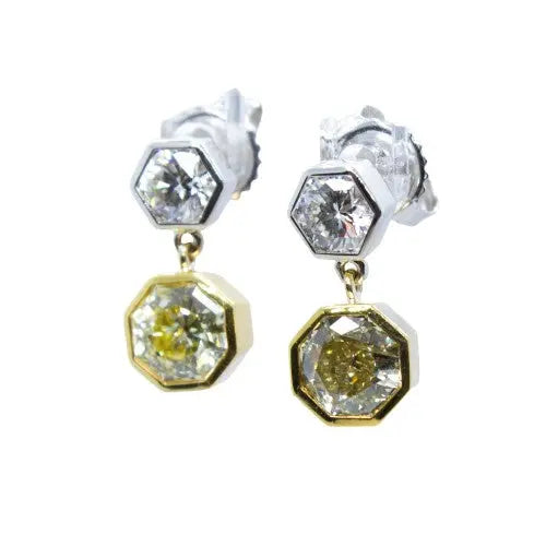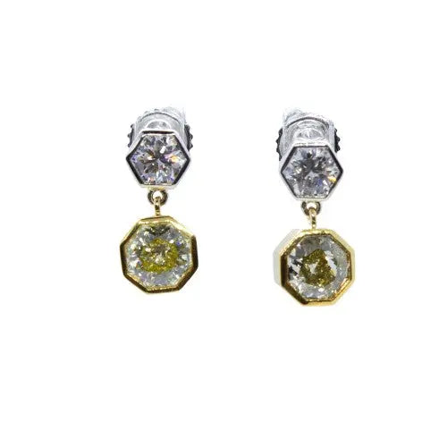 Fancy Yellow Octagon & White Diamond Two-Tone Dangle Earrings – Image 1