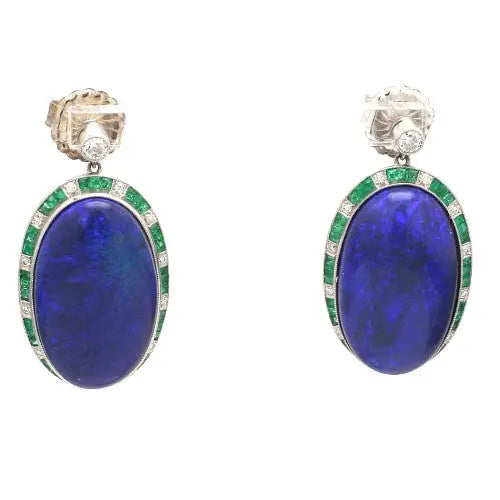 Lightning Ridge Black Opal Earrings with Diamonds and Emeralds