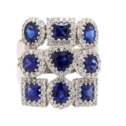 Multi-Shaped Sapphire Ring with Round Brilliant Diamond Accents