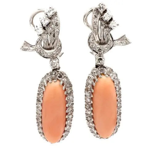 Coral and Diamond Drop Earrings in Platinum