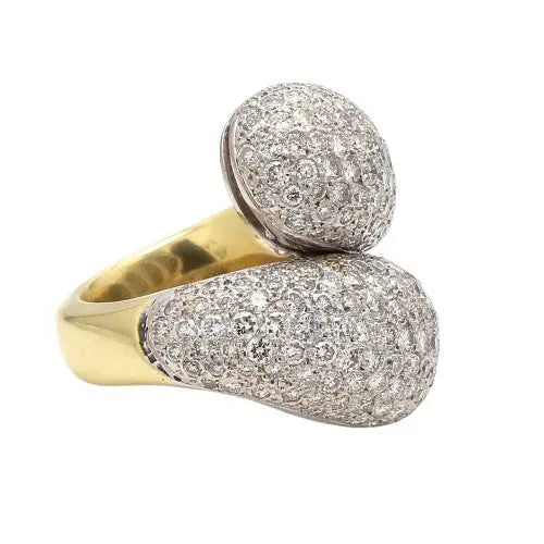 This exquisite 18K gold double ring features a stunning array of white diamonds totaling 7.0 carats. With a total weight of 19.7 grams, this piece is a luxurious addition to any collection.