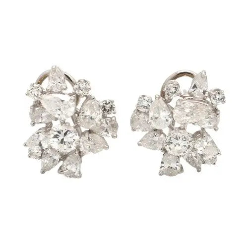 Featuring 0.90ct of round-cut white diamonds and 5.00ct of pear-cut white diamonds, these exquisite cluster earrings are set in platinum. Total weight: 8.6g.