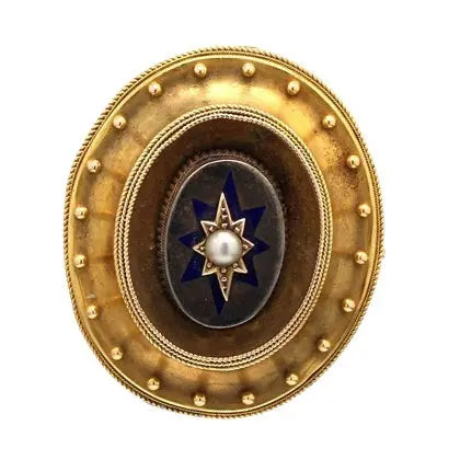 Estate Pearl and Enamel Mourning Brooch