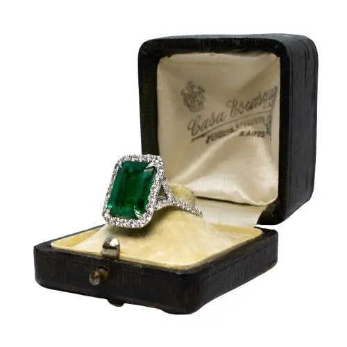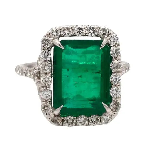 Platinum Ring with Emerald Cut Emerald and Diamond Accents