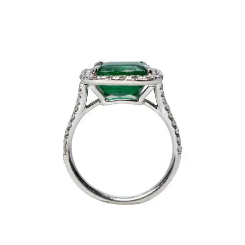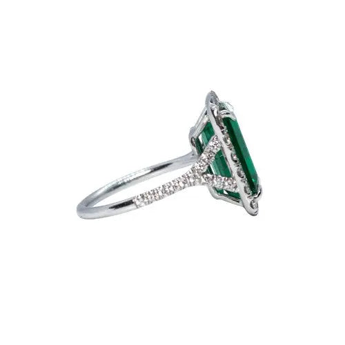 Platinum Ring with Emerald Cut Emerald and Diamond Accents – Image 6