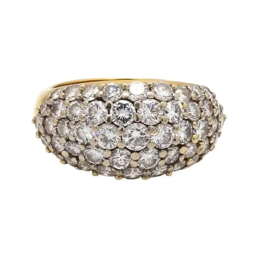 This luxurious gold ring showcases an array of round cut diamonds, each with a captivating white hue and VS1 clarity. The diamonds are meticulously set in 18k gold, creating a dazzling display of brilliance. Weighing 10 grams, this piece is both elegant and substantial, perfect for any jewelry collection.